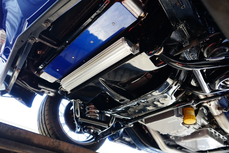 The chassis has been fortified with Detroit Speed products. The DSE subframe contains all the mechanicals and dynamics, seemingly programmed into the construction. That would include coilover shock absorbers, tubular control arms, and rack steering. We retained the leaf spring rear suspension but hung it with offset shackles to clear the tires and the mini-tubs. We ran subframe connectors and set the stance.