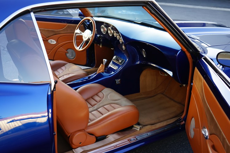 The most sanitary sheetmetal was swabbed of its door handles, acquired a custom trunk lid, a reformed rear bumper, a lowered spoiler, and LED taillights. The only departure from smooth and straight is the ZL2 cowl hood. Color Craft pronounced this as the perfect recipient of Sikkens blue and clear coats.